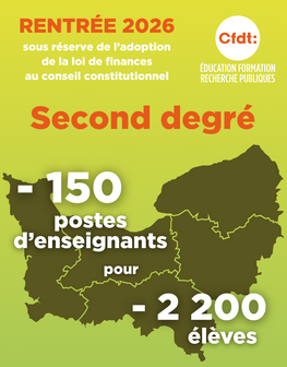 La CFDT Éducation Formation Recherche Publiques revendique que la période de baisse démographique soit l’occasion d’améliorer les conditions de travail et de rémunération des personnels en sanctuarisant, à minima, les postes existants. À l’inverse, ce qui se prépare en Normandie pour septembre 2026, ce sont des suppressions de postes nombreuses, des collègues affectés loin de chez eux, parfois sur plusieurs établissements, des contractuels qui ne seront pas reconduits… Un plan social qui ne dit pas son nom.